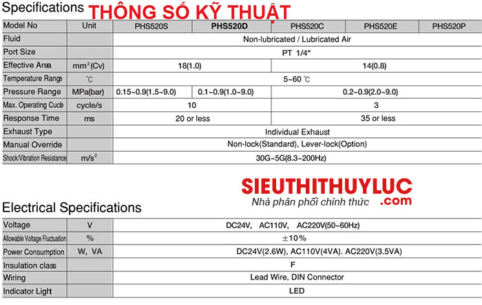 Van điện từ khí nén Parker PHS520 Series cung cấp tại Máy thủy lực đảm bảo là hàng chính hãng nhập khẩu trực tiếp từ PARKER của Mỹ. Cam kết phân phối sản phẩm với giá tốt nhất. Liên hệ trực tiếp với chúng tôi qua Hotline 02435132848 để được nhận bảng giá