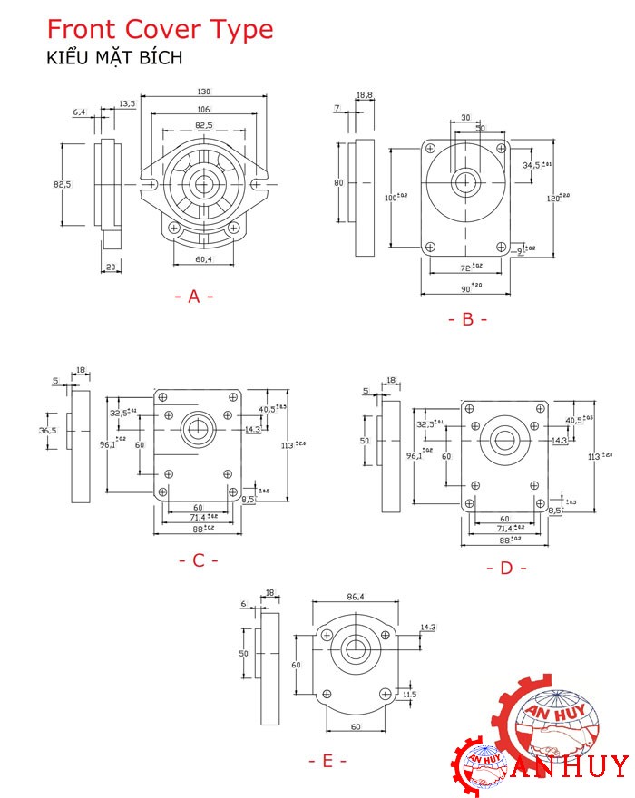 • Trục (Drive shaft):Trục tròn, trục then hoa và trục côn 1/8 (Straight keyed or Spline or 1/8 Taper shaft)