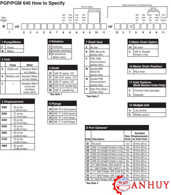 Mã đặt hàng của bơm thủy lực bánh răng Parker PGM 640